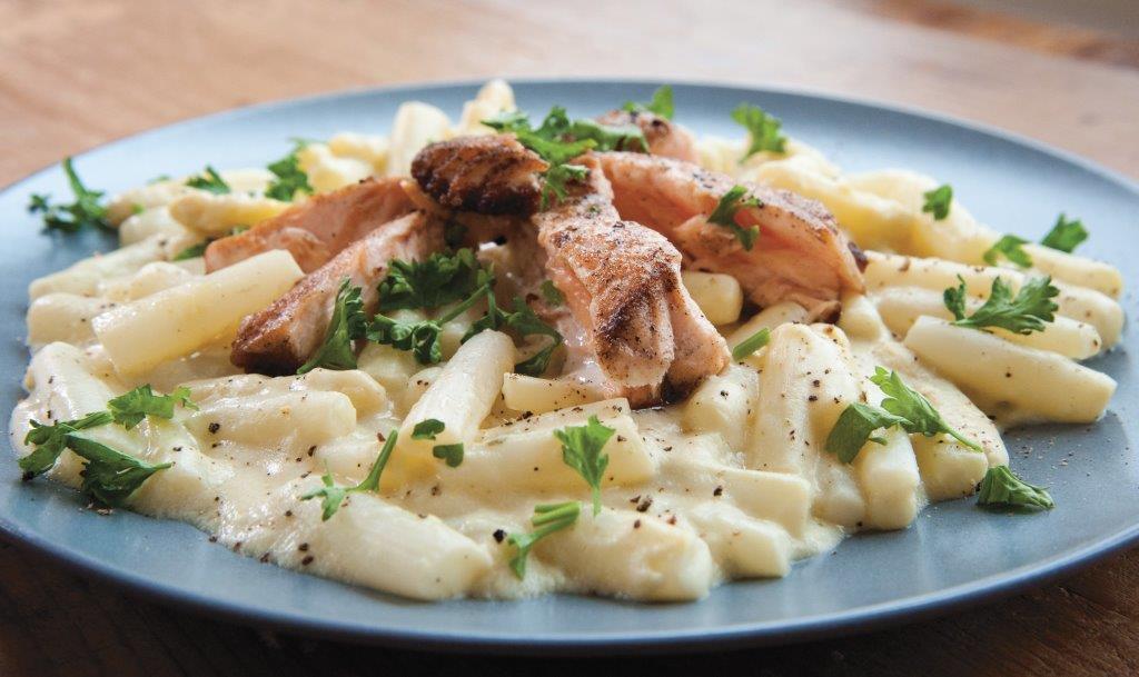 Klassieke asperges met krieltjes, zalm en Tijnsaus Hoe je de eerste asperges van een nieuw seizoen eet? 'Klassiek' natuurlijk. Zo proef je het best de pure smaak van de lentegroente bij uitstek. Helemaal als je er verse krieltjes, (warm gerookte) zalm en...